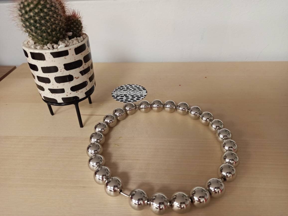 ORBIT Choker, silver balls on steel choker necklace, statement neck piece