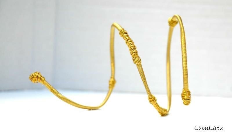 A Unique piece made of gold wire wrapped around flexible metal.