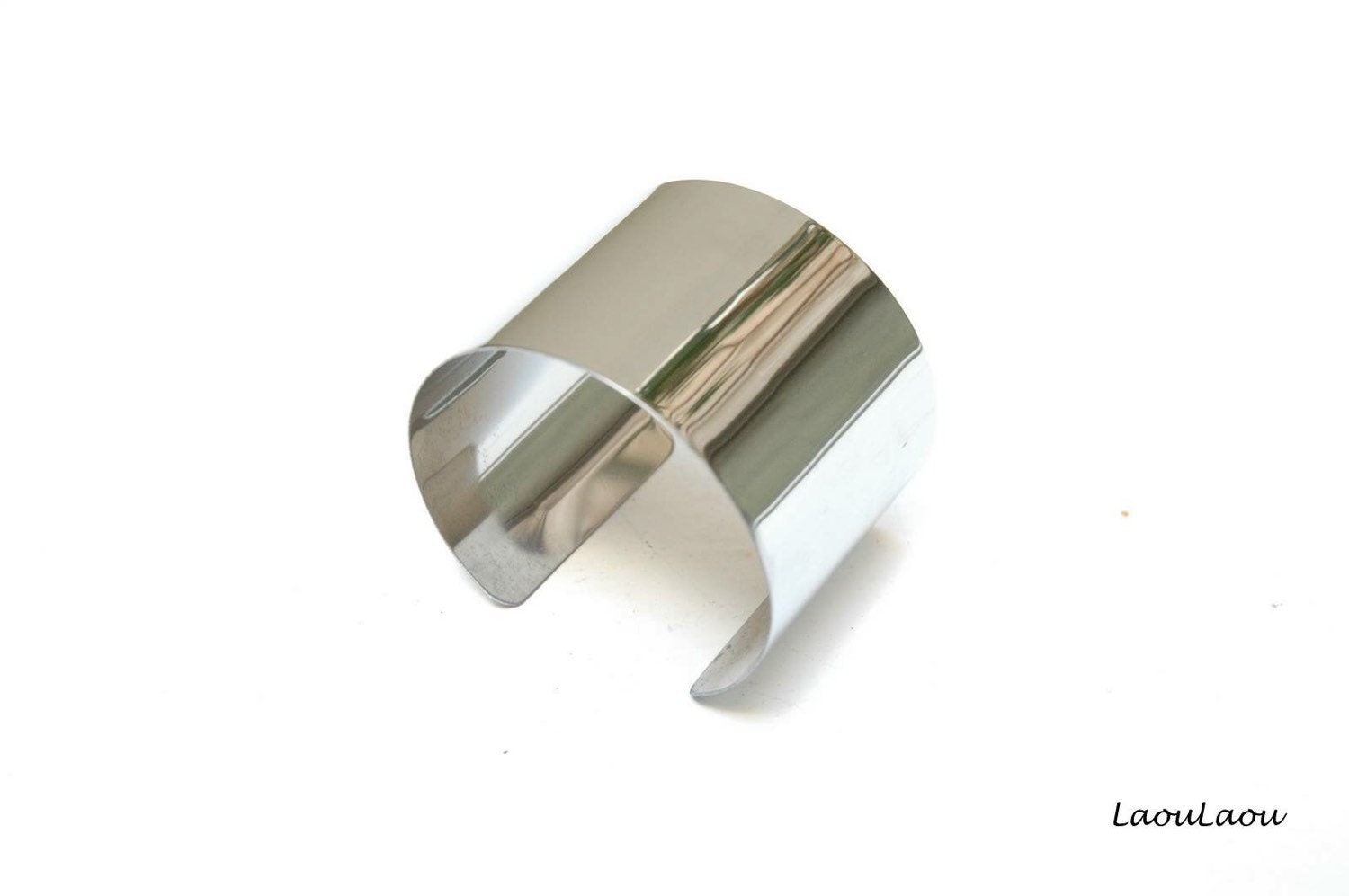 Silver Metallic Cuff Bracelet Projections Mirror Minimal Wide Statement Piece Lightweight Jewelry