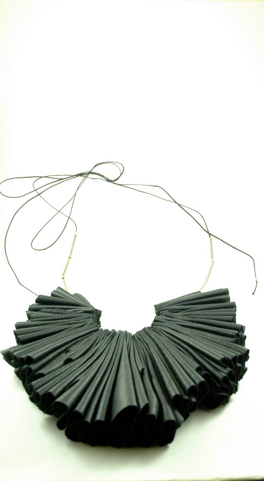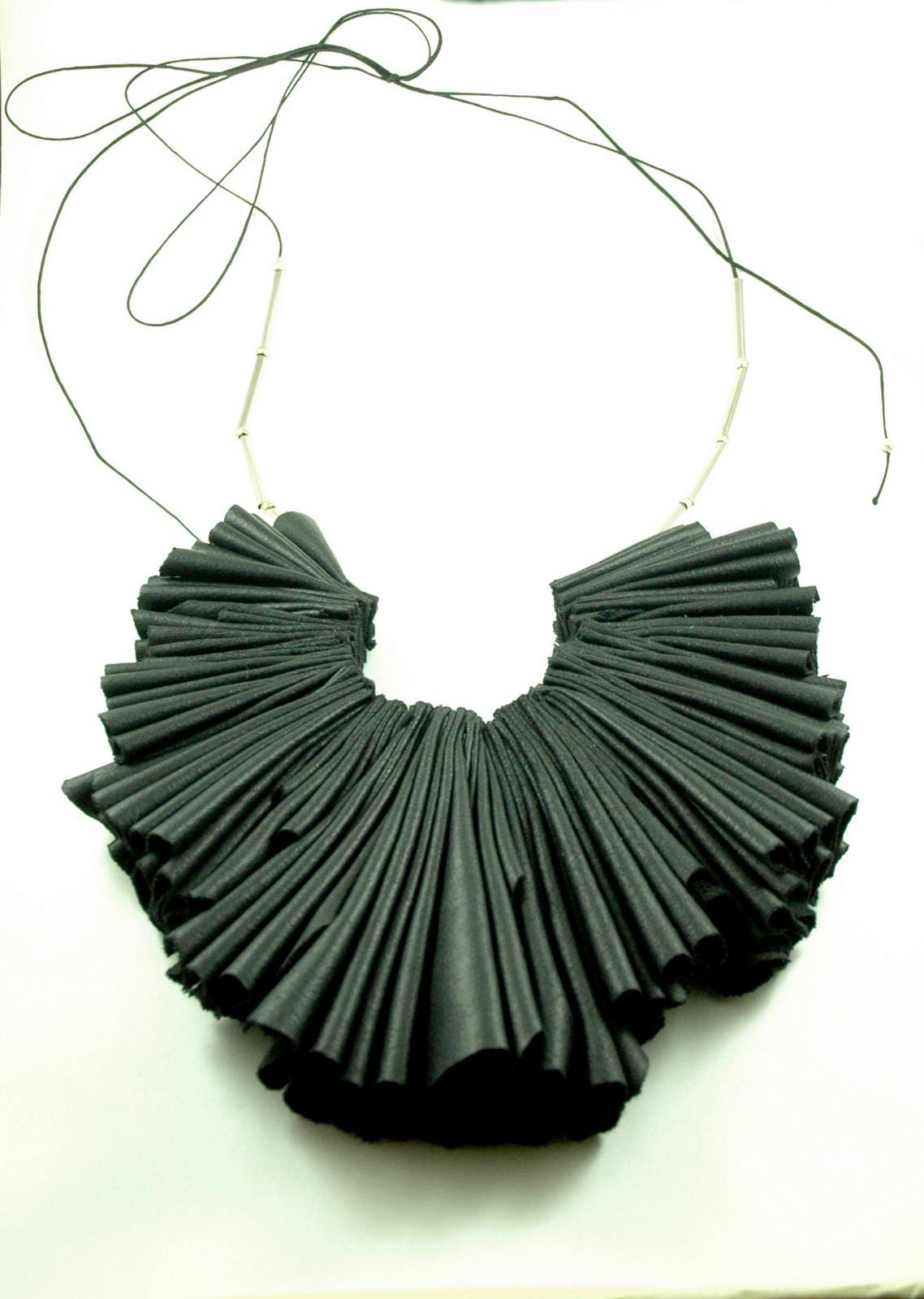 Avant Garde Black Leatherette Necklace: Pleated Ruffle Tribal Statement Piece