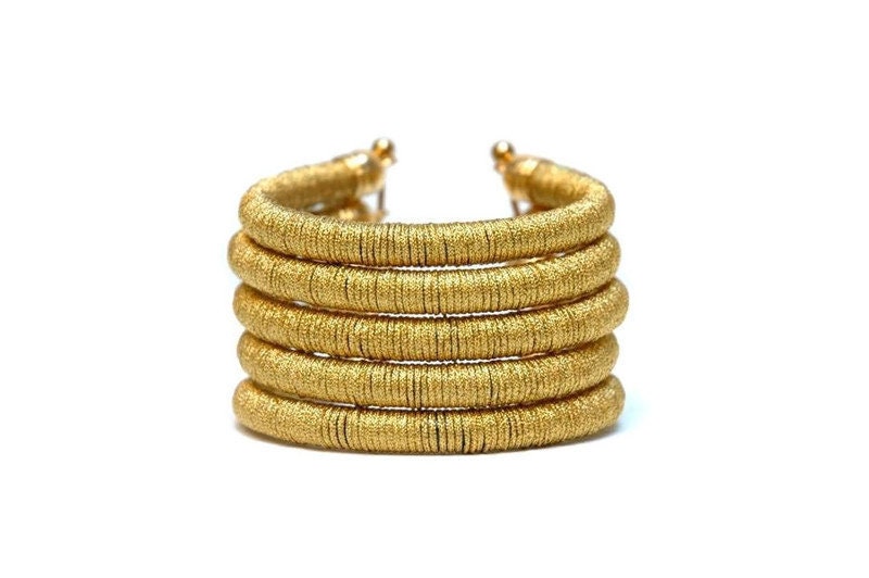 Handmade African Tribal Cuff: Gold Silk & Fabric Wrapped Bracelet