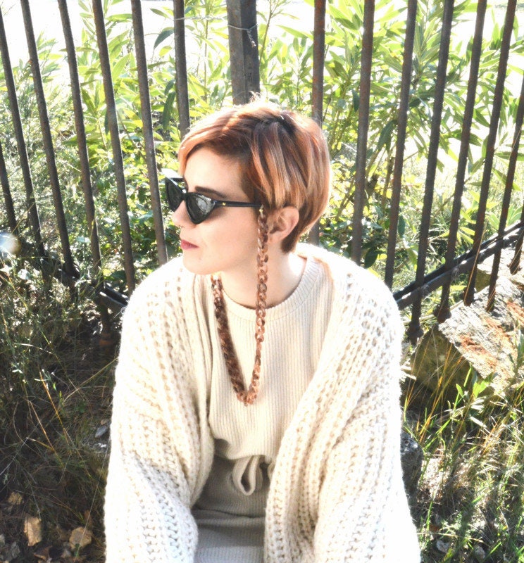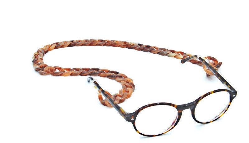 Eyeglasses and sunglasses chains is the thing! This beautiful acetate Cuban link oval chain in natural beige color matches with all colors so you can easily style it up with all of your glasses. Light-weighted and stylish and also so comfortable.