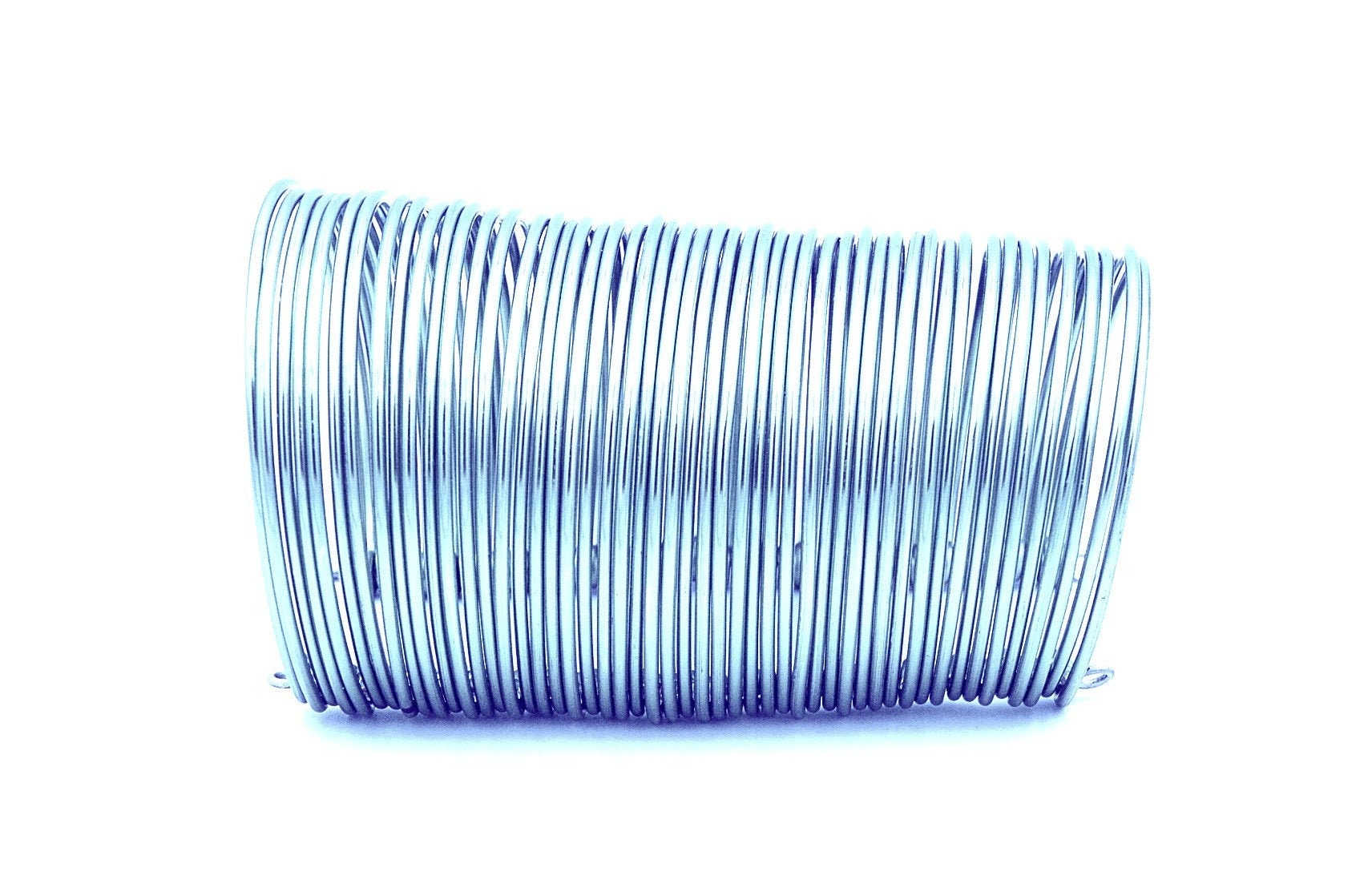 The bracelet is steady but flexible and can be adjusted on your hand. Aluminum is very lightweight and you can easily shape it around your hand. The endings are curved and attached with a steel piercing bar.